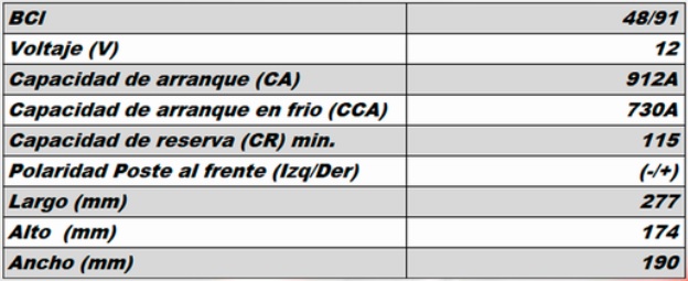 La batería 48/91 está diseñada para ofrecer arranque potente, estabilidad eléctrica y larga vida útil en vehículos que requieren alto rendimiento. Fabricada con tecnología avanzada de placas de plomo-calcio y materiales de alta pureza, garantiza una entrega de energía constante incluso en condiciones exigentes.