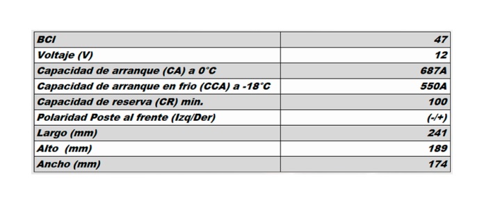 La batería está diseñada para ofrecer un rendimiento confiable y duradero en todo tipo de condiciones. Gracias a su tecnología de libre mantenimiento, brinda mayor comodidad al usuario al eliminar la necesidad de revisiones constantes. Su diseño compacto y eficiente la convierte en una excelente opción para vehículos modernos que requieren un suministro eléctrico estable y seguro. Ideal para quienes buscan confianza y calidad respaldadas por una de las marcas líderes en acumuladores automotrices.